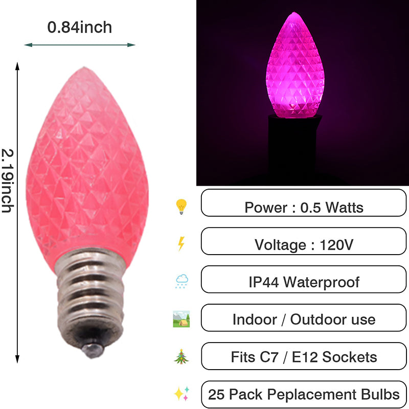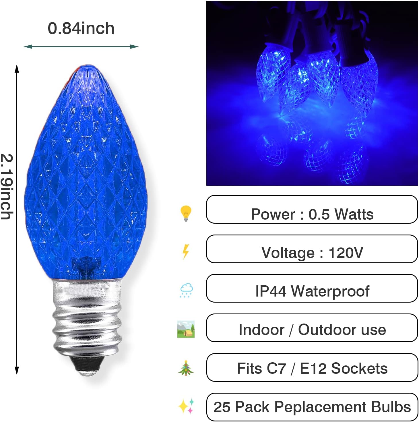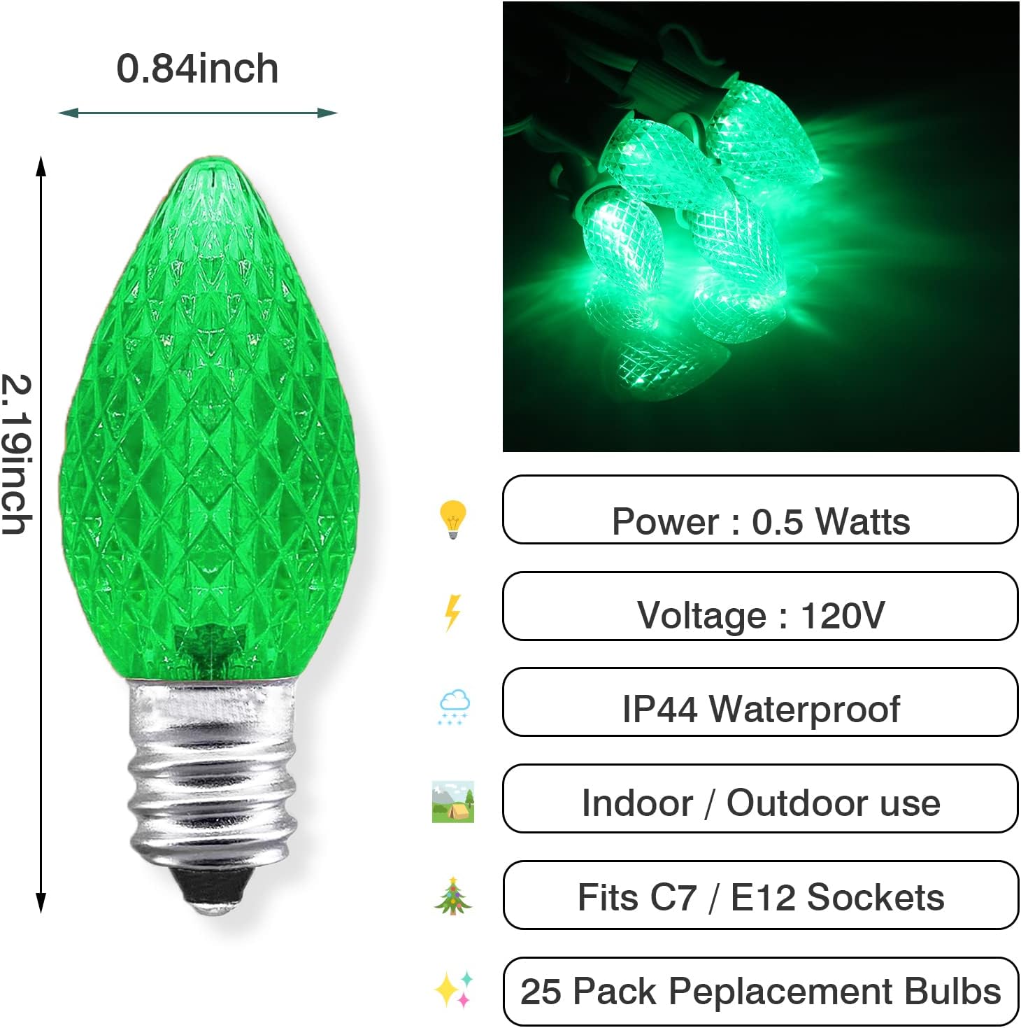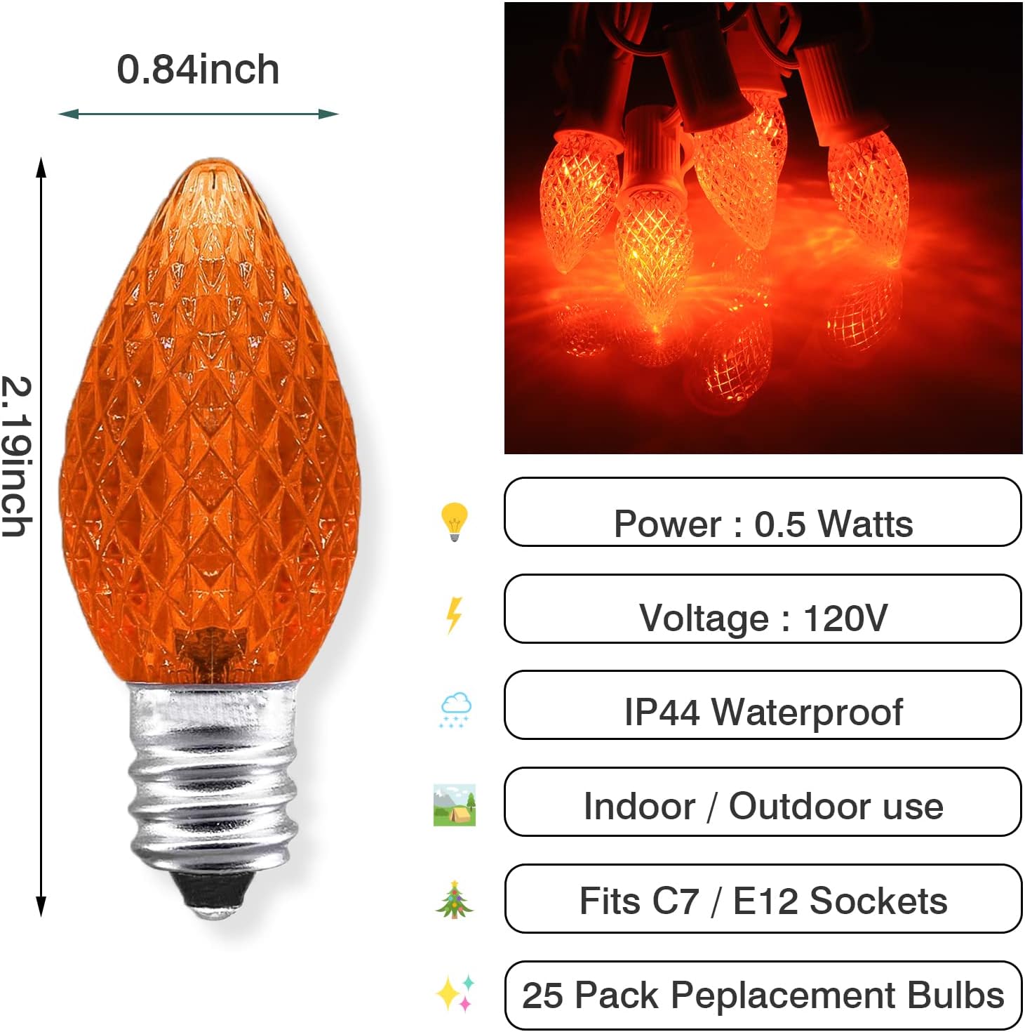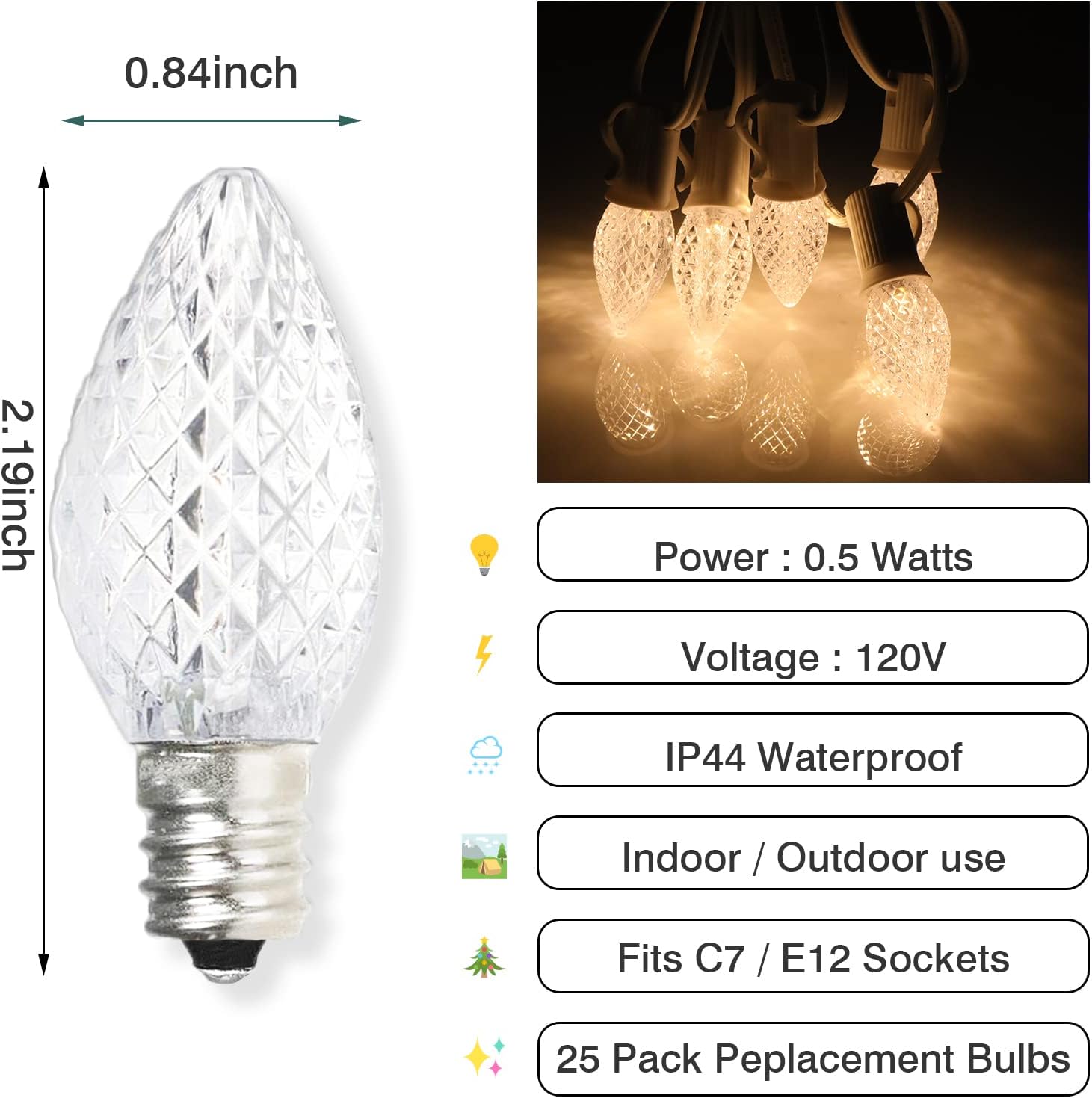 25 Pack C7 Led Replacement Bulbs, Commercial Grade 3 SMD LEDs in Each C7 Faceted Lights Bulb for Outdoor String Lights Decoration