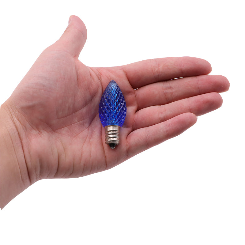 25 Pack C7 Led Replacement Bulbs, Commercial Grade 3 SMD LEDs in Each C7 Faceted Lights Bulb for Outdoor String Lights Decoration (Blue)