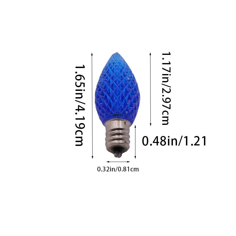 【Diamond Faceted Bulb Shell and E12 Base 】 Pack of 25 C7 replacement led Christmas bulbs, each bulb has a diamond faceted shell, creating charming and soft relaxing glow . E12 base fits any standard C7/E12 sized stringer socket. Take them to decorate your garden, Christmas Tree, bedroom, doorway, apartment and good choice for daily and seasonal decorations.