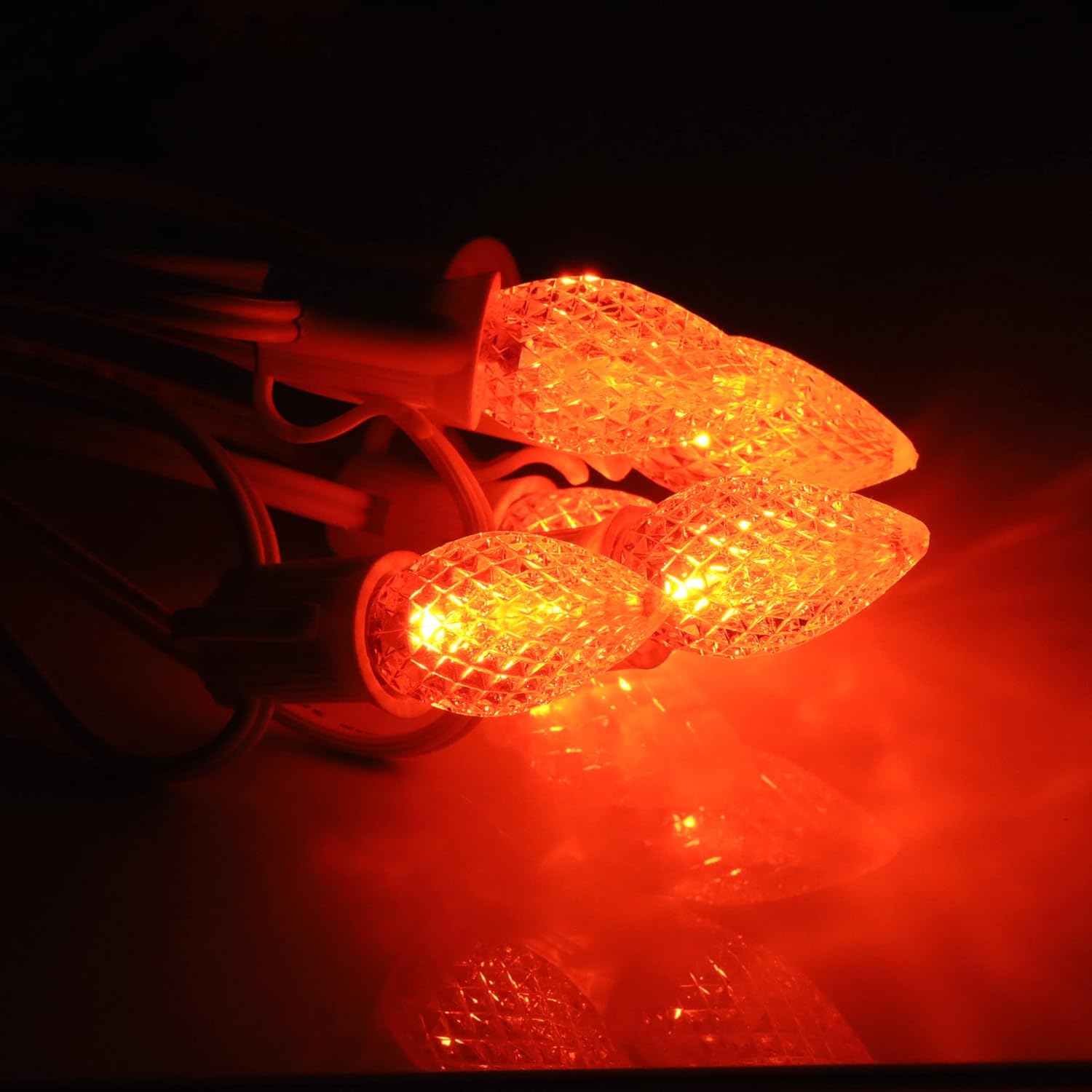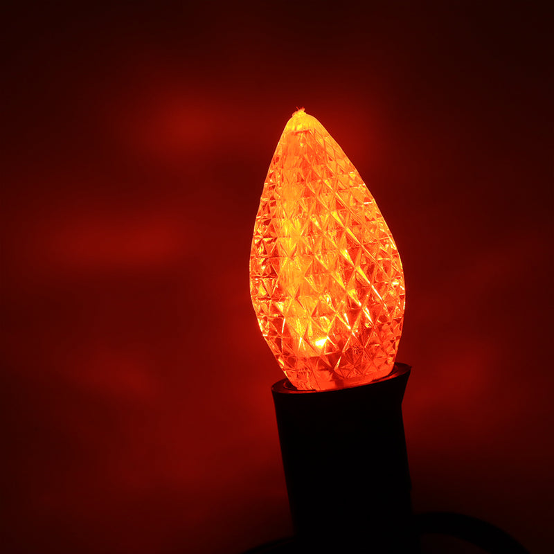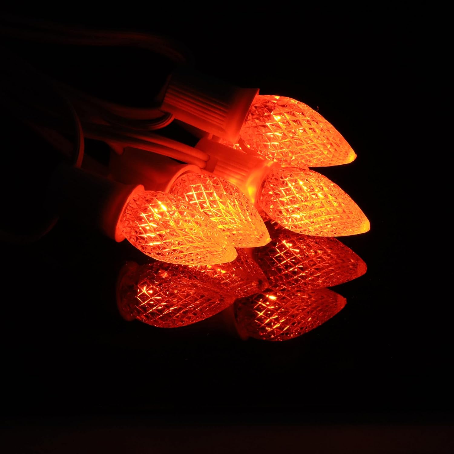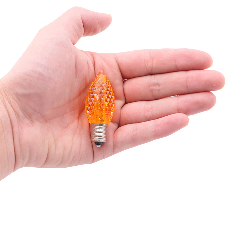 25 Pack C7 Led Replacement Bulbs, Commercial Grade 3 SMD LEDs in Each C7 Faceted Lights Bulb for Outdoor String Lights Decoration (Orange)
