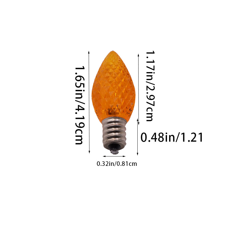 【Diamond Faceted Bulb Shell and E12 Base 】 Pack of 25 C7 replacement led Christmas bulbs, each bulb has a diamond faceted shell, creating charming and soft relaxing glow . E12 base fits any standard C7/E12 sized stringer socket. Take them to decorate your garden, Christmas Tree, bedroom, doorway, apartment and good choice for daily and seasonal decorations.