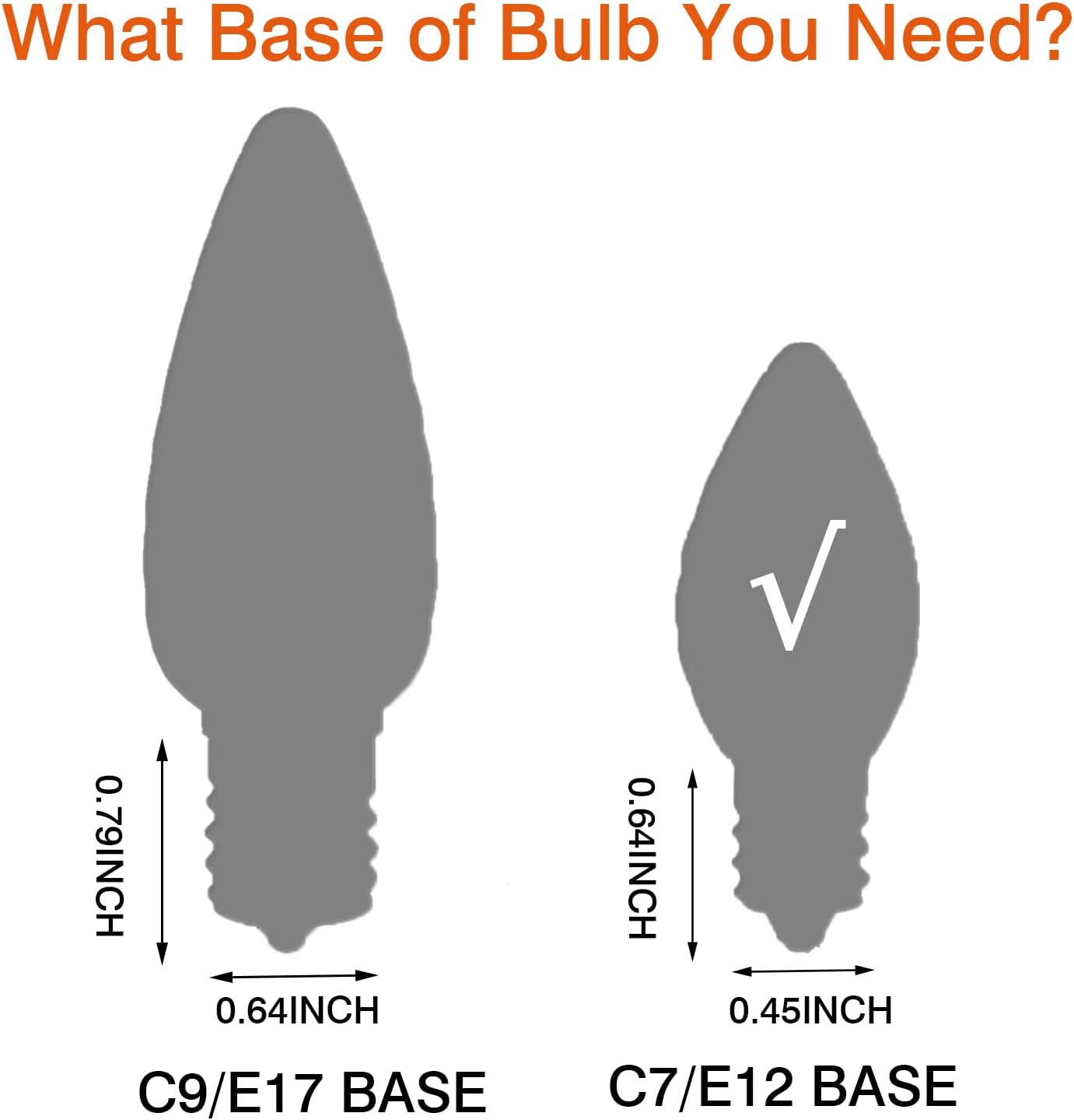 【Durable and Reliable】 These Minleon C7 Christmas replacement bulbs are designed with durable plastic shell, much stronger than glass bulb, not easy to break. Nikel plated E12 base improve electric and makes it possible to prevent water or moisture from getting into the E12 LED bulb. With waterproof rated, it is a good choice for both outside and inside.