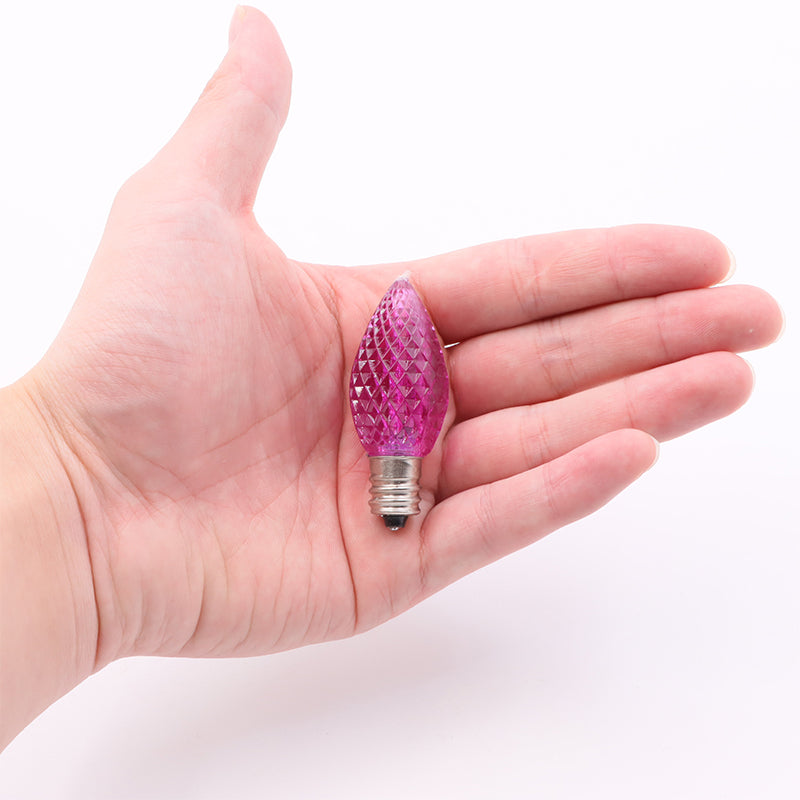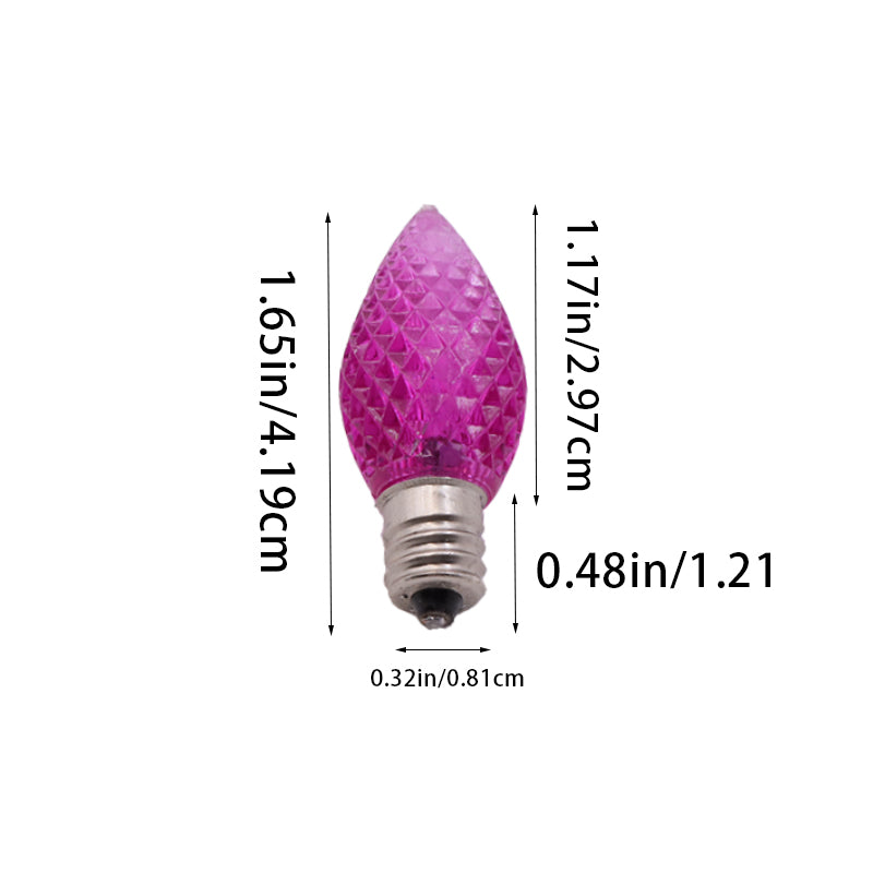 【Diamond Faceted Bulb Shell and E12 Base 】 Pack of 25 C7 replacement led Christmas bulbs, each bulb has a diamond faceted shell, creating charming and soft relaxing glow . E12 base fits any standard C7/E12 sized stringer socket. Take them to decorate your garden, Christmas Tree, bedroom, doorway, apartment and good choice for daily and seasonal decorations.