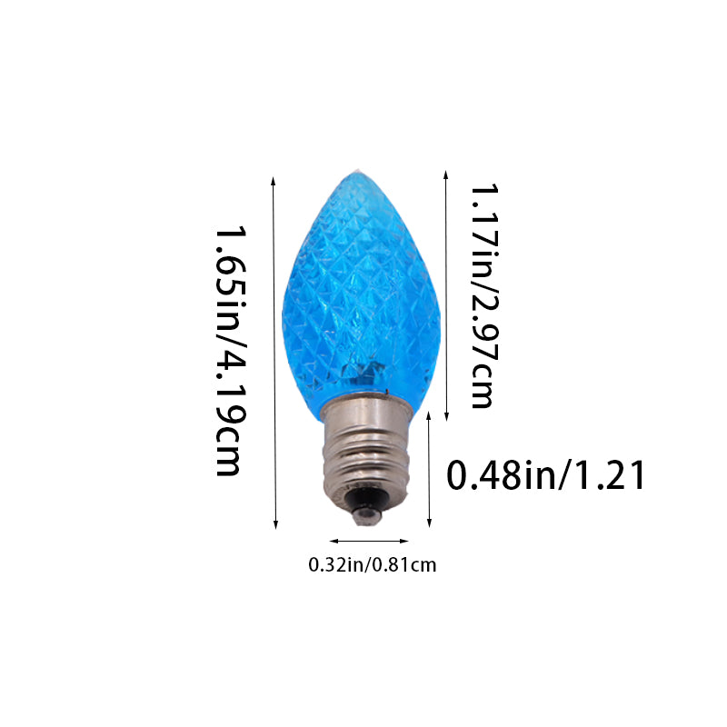 【Diamond Faceted Bulb Shell and E12 Base 】 Pack of 25 C7 replacement led Christmas bulbs, each bulb has a diamond faceted shell, creating charming and soft relaxing glow . E12 base fits any standard C7/E12 sized stringer socket. Take them to decorate your garden, Christmas Tree, bedroom, doorway, apartment and good choice for daily and seasonal decorations.
