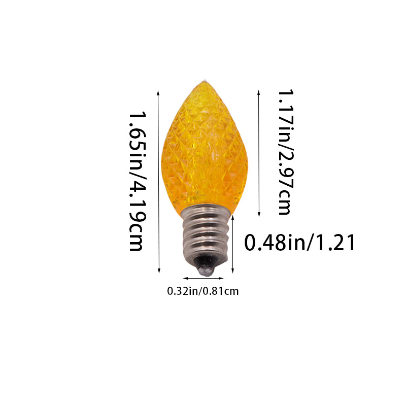 【Diamond Faceted Bulb Shell and E12 Base 】 Pack of 25 C7 replacement led Christmas bulbs, each bulb has a diamond faceted shell, creating charming and soft relaxing glow . E12 base fits any standard C7/E12 sized stringer socket. Take them to decorate your garden, Christmas Tree, bedroom, doorway, apartment and good choice for daily and seasonal decorations.