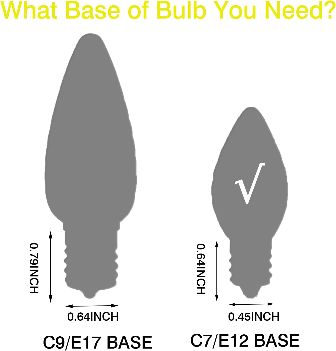 【Durable and Reliable】 These Minleon C7 Christmas replacement bulbs are designed with durable plastic shell, much stronger than glass bulb, not easy to break. Nikel plated E12 base improve electric and makes it possible to prevent water or moisture from getting into the E12 LED bulb. With waterproof rated, it is a good choice for both outside and inside.