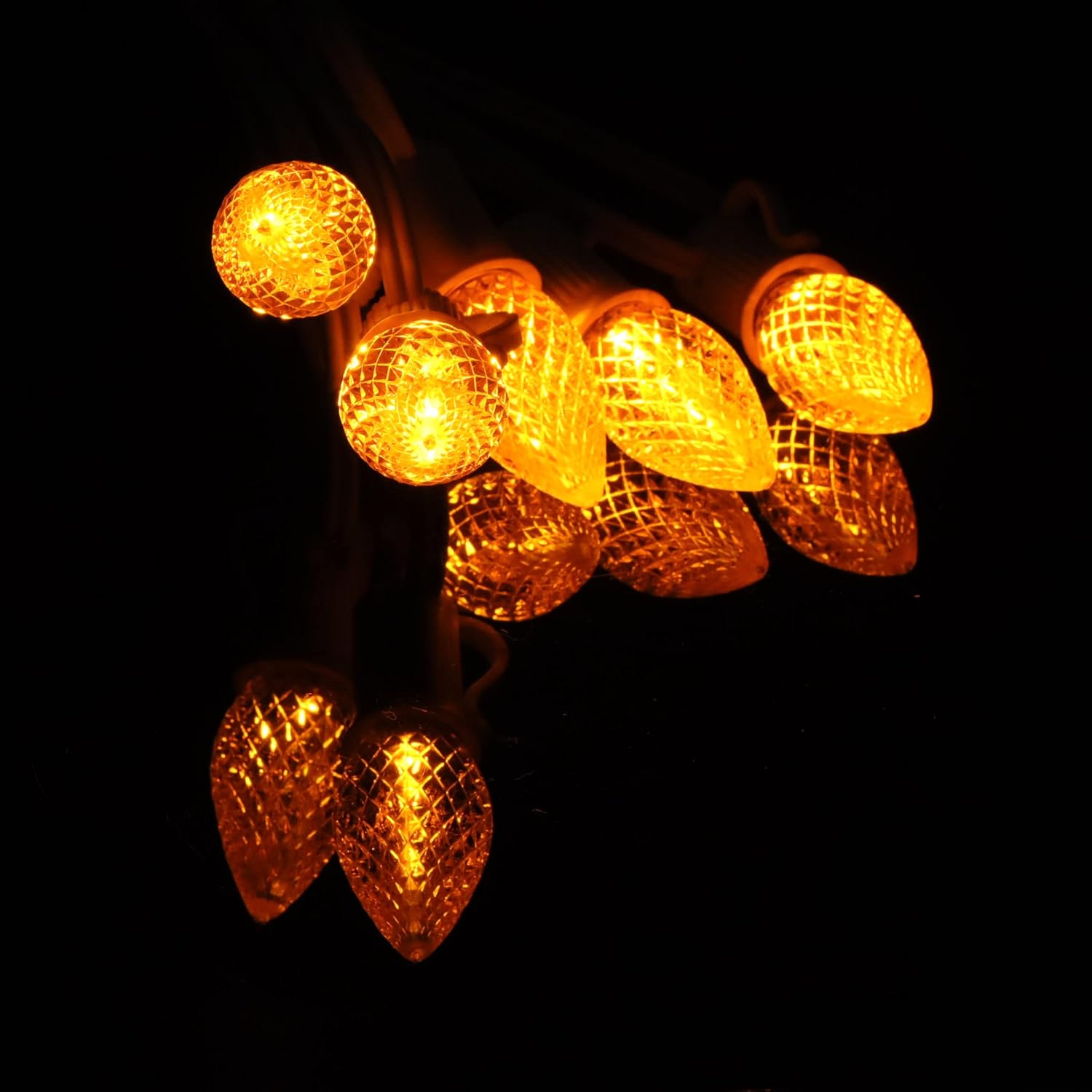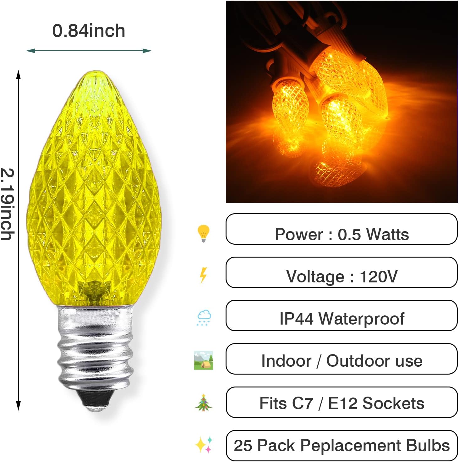 25 Pack C7 Led Replacement Bulbs, Commercial Grade 3 SMD LEDs in Each C7 Faceted Lights Bulb for Outdoor String Lights Decoration (Yellow)