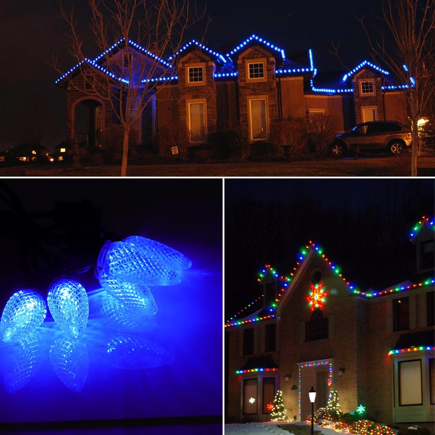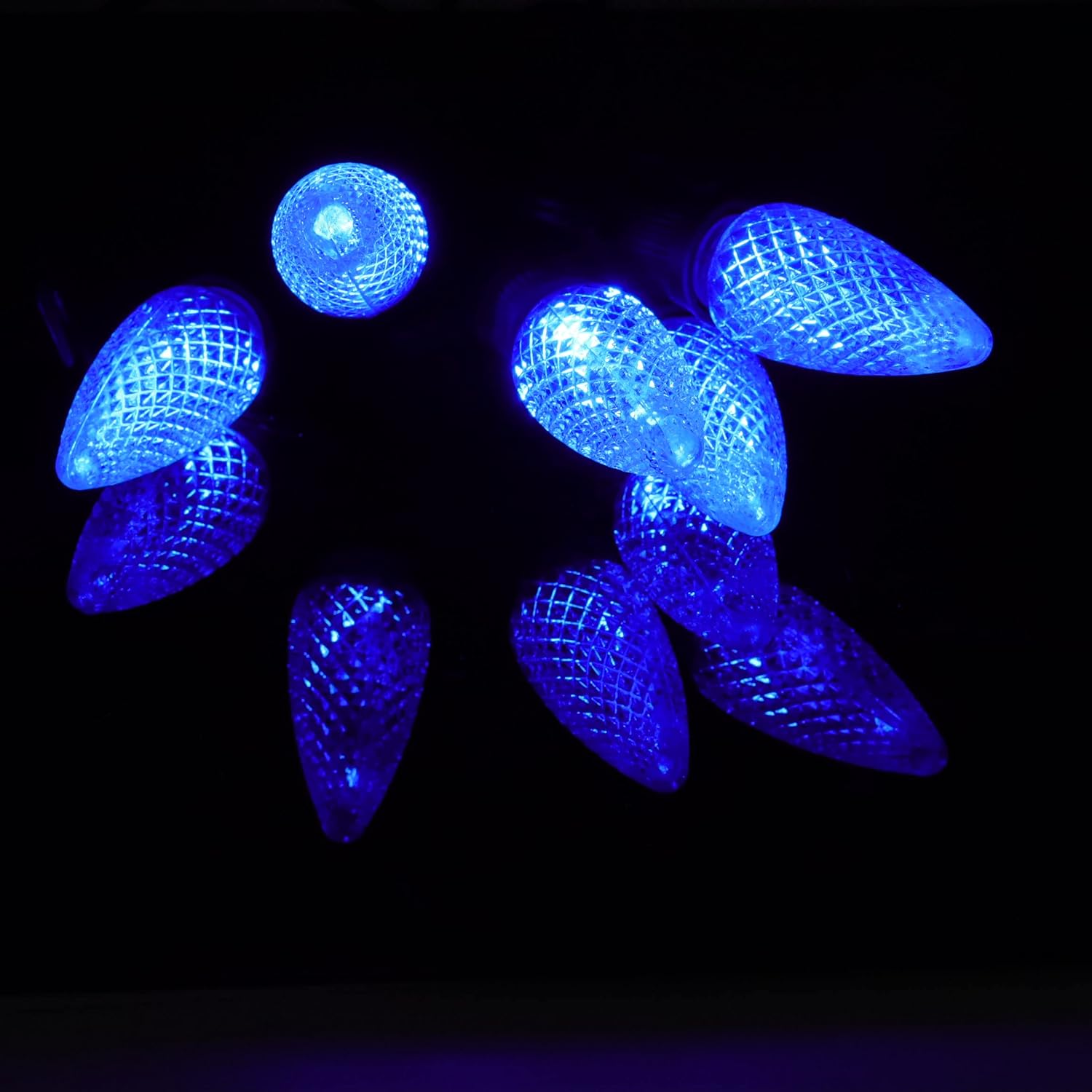 25 Pack C9 LED Replacement Christmas Light Bulb, C9 Shatterproof LED Bulb for Christmas String Light, E17 Intermediate Base, Commercial Grade Bulbs, 5 Diode (LED's-Blue)