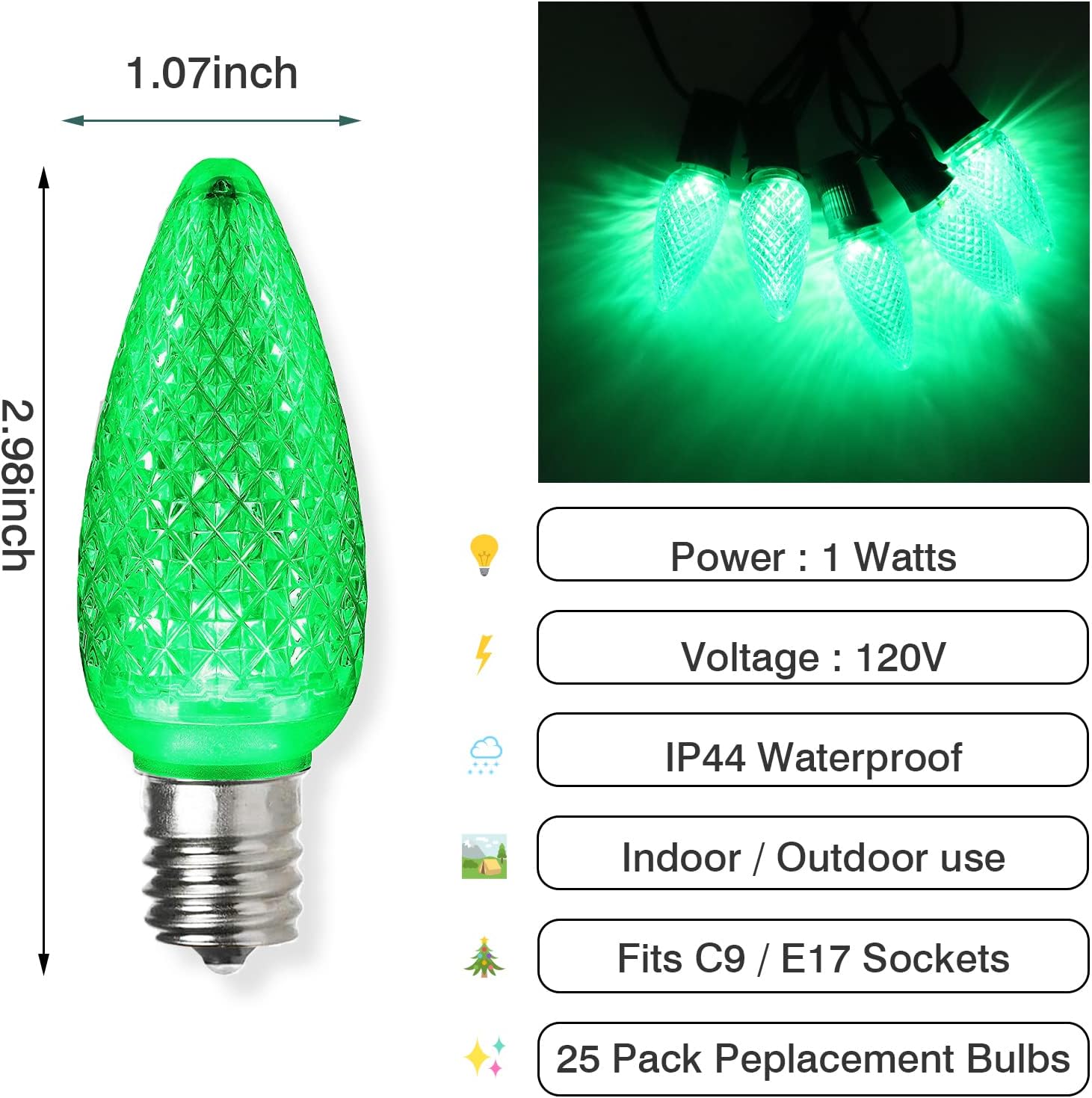 2.PREMIUM PACKAGE: Our C9 LED faceted bulbs are made with diamond cut polycarbonate plastic to provide a shimmering light (360 degrees around) and have a 40,000 hour life. With many different color options, you are sure to wow your guests and brighten your space.