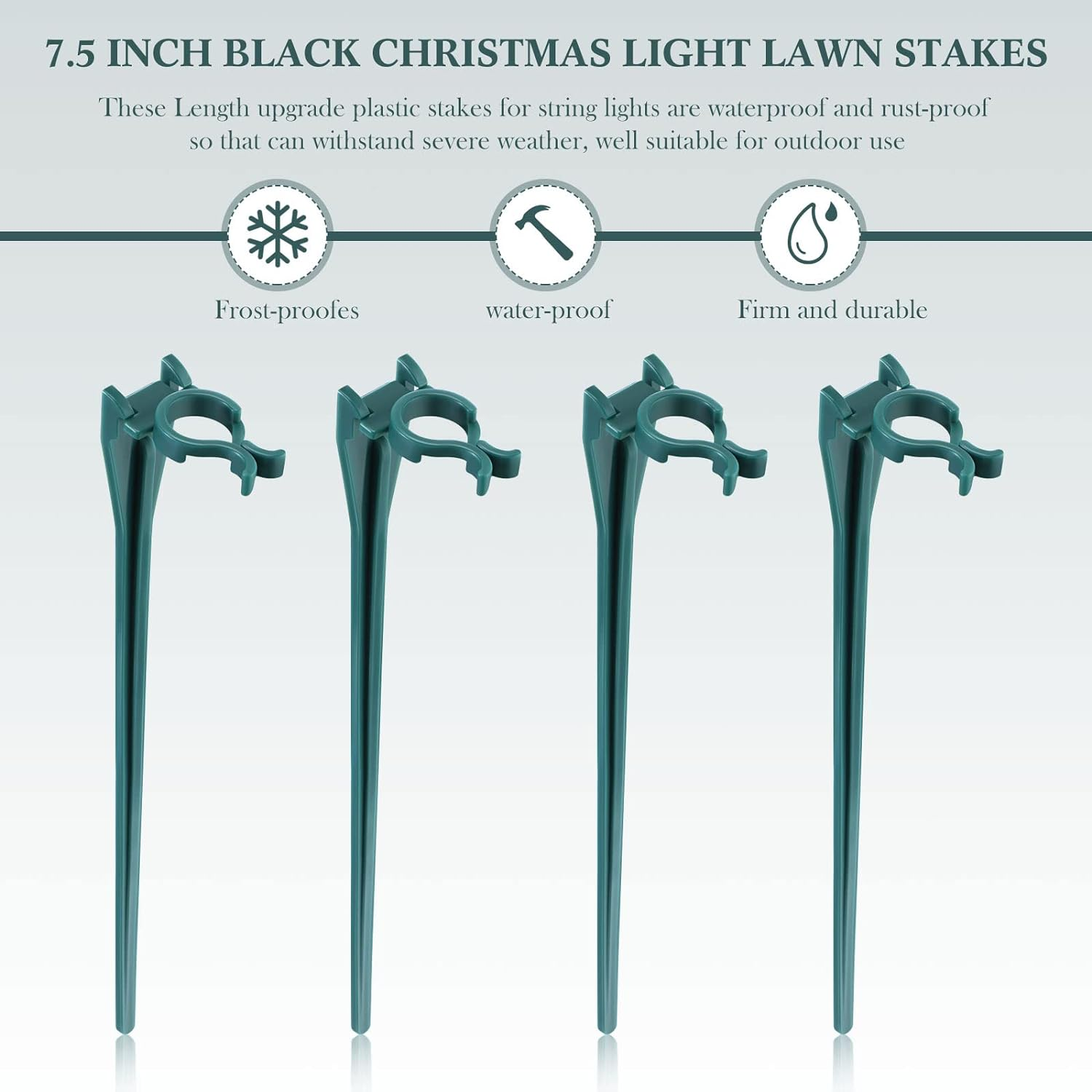 Christmas Light Stakes Universal Yard Lawn Holiday Light Stakes for C7 C9 String Lights, 7.5 inches Ground Stakes for Christmas Outdoor Lights Holders on Yards, Driveways, Pathways (Green,50 Pieces)