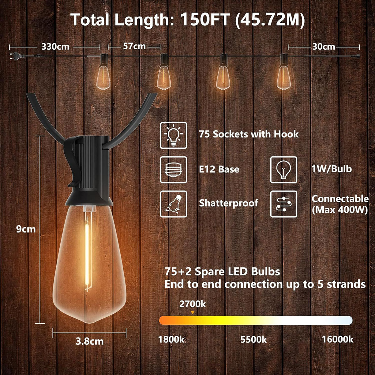 Plug-in ST38 string of lights for urban roof eaves, exterior wall decoration, outdoor waterproof, Christmas and holiday