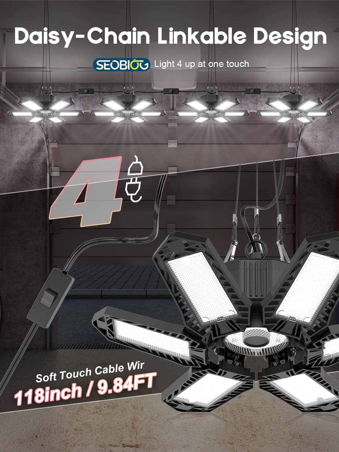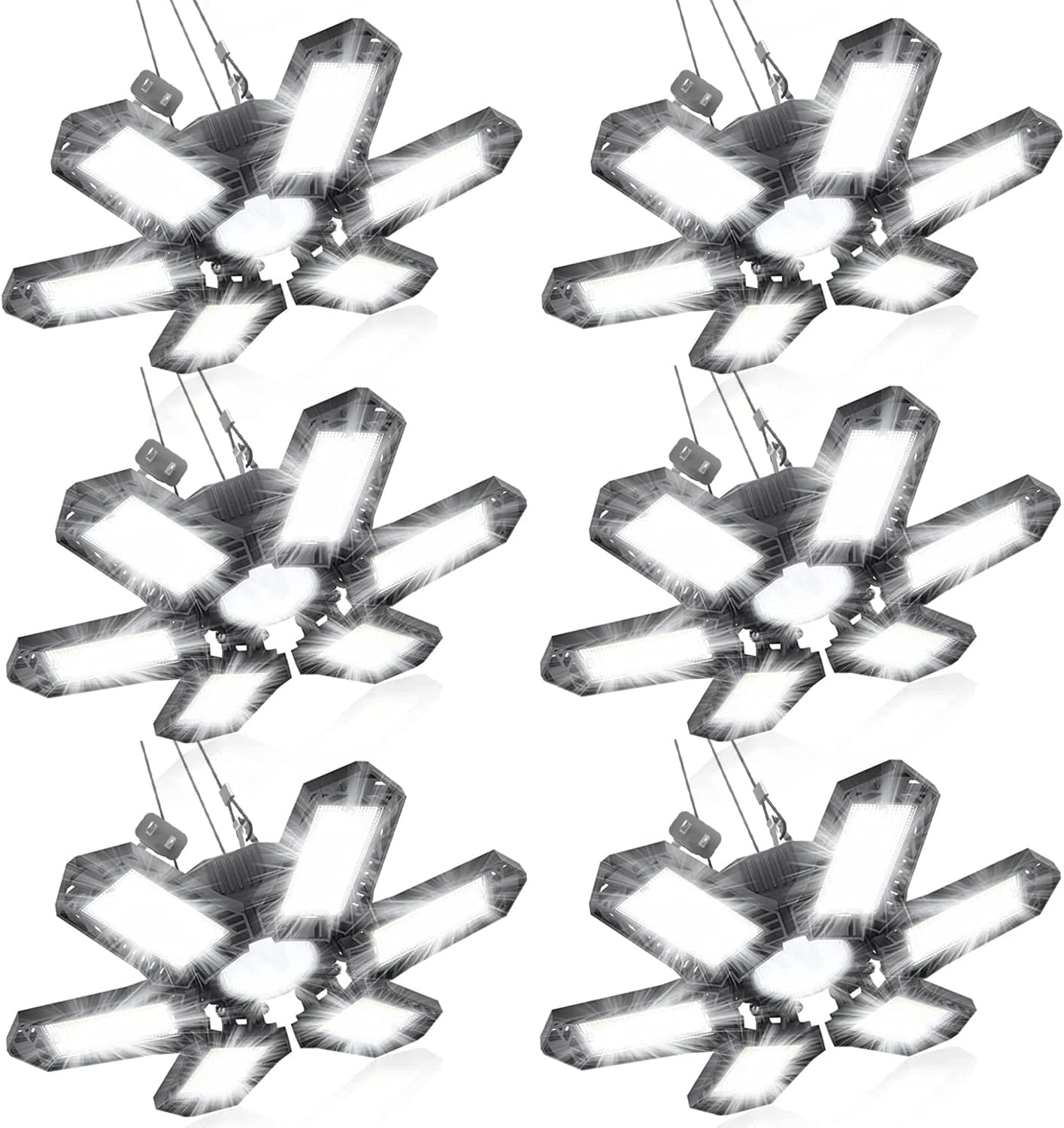 2 Pack Plug in Garage Light, Upgraded 200W 20000LM Linkable LED Shop Light, 6500K Ceiling Lights w/ 6 Deformable Panels for Garage, Warehouse, Barn, Basement (Built-in ON/Off Switch)
